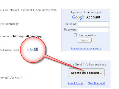 1. เข้าไปที่ www.gmail.com แล้วคลิกที่ Create an account